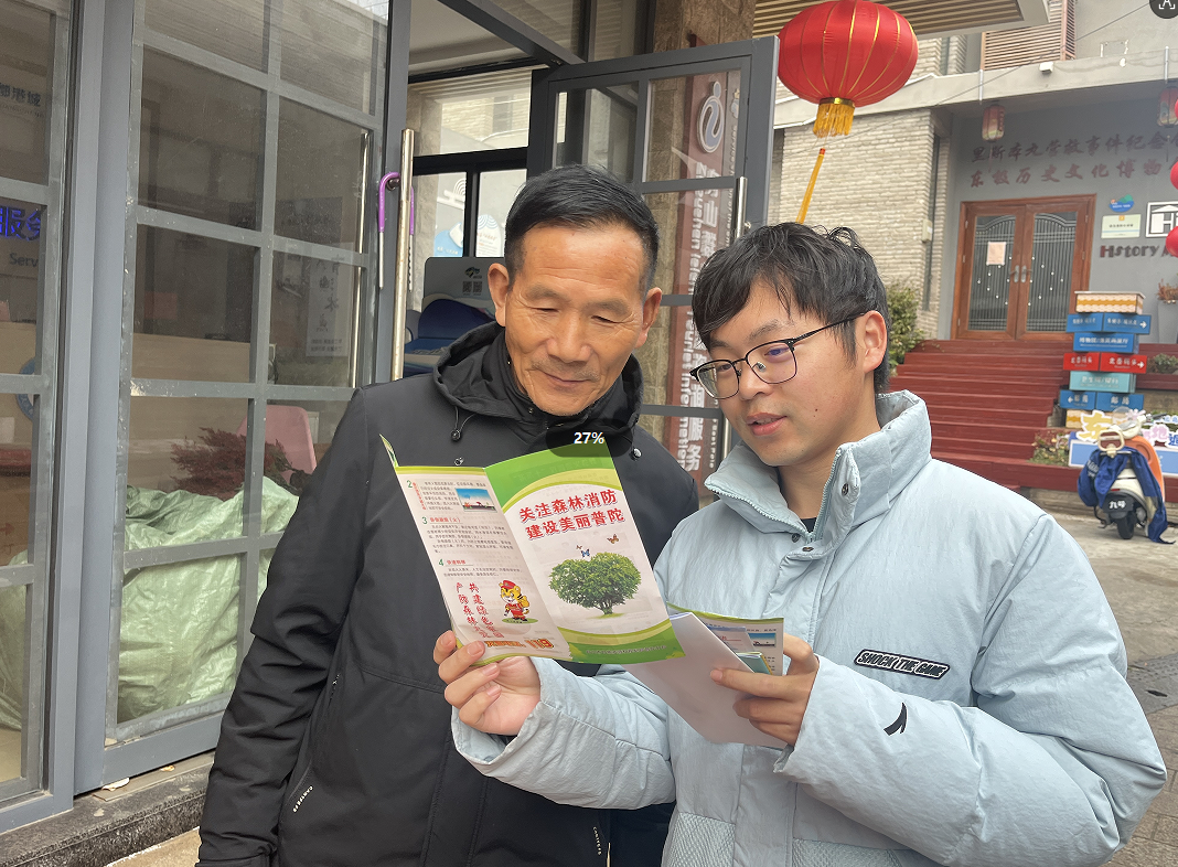 志愿者們在倒陡街人流密集路段,向過往村民發(fā)放宣傳手冊。結合東極村海島村落房屋布局特點,用通俗方言講解冬季防火要點、煙花爆竹安全燃放規(guī)范,重點提醒村民遠離易燃物品、不違規(guī)燃放煙花爆竹,及時排查家中火災隱患。