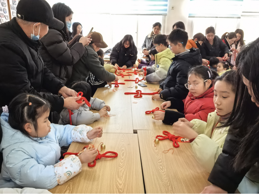 活動(dòng)現(xiàn)場(chǎng)暖意融融,紅色棉繩、吉祥卡片、小巧鈴鐺、迷你燈籠等材料整齊陳列,吸引眾多學(xué)生踴躍參與。志愿者詳細(xì)講解中國(guó)結(jié)的編織技巧,從繩結(jié)的纏繞、穿插到拉緊、固定,一步步耐心示范,手把手指導(dǎo)大家操作。孩子們專注投入,穿繩、打結(jié)、裝飾,互相交流心得,現(xiàn)場(chǎng)氣氛熱烈。經(jīng)過(guò)一番巧思編織,一個(gè)個(gè)造型別致的中國(guó)結(jié)陸續(xù)完工,紅色棉繩交織成吉祥紋樣,搭配寫滿祝福的卡片、清脆作響的鈴鐺與小巧玲瓏的燈籠,寓意著團(tuán)圓美滿、吉祥如意。大家手持親手制作的作品,臉上洋溢著喜悅的笑容,紛紛拍照留念。